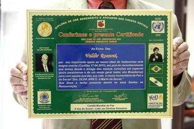 MAKE A MEME View Large Image O presidente da Assembleia Legislativa, deputado Valdir Rossoni (PSDB), recebeu a comenda “Amigo das causas sociais no grau benemérito da paz e do social”, concedida pelo bispo João Pedro Nascimento, presidente do Comitê Mundial da ...