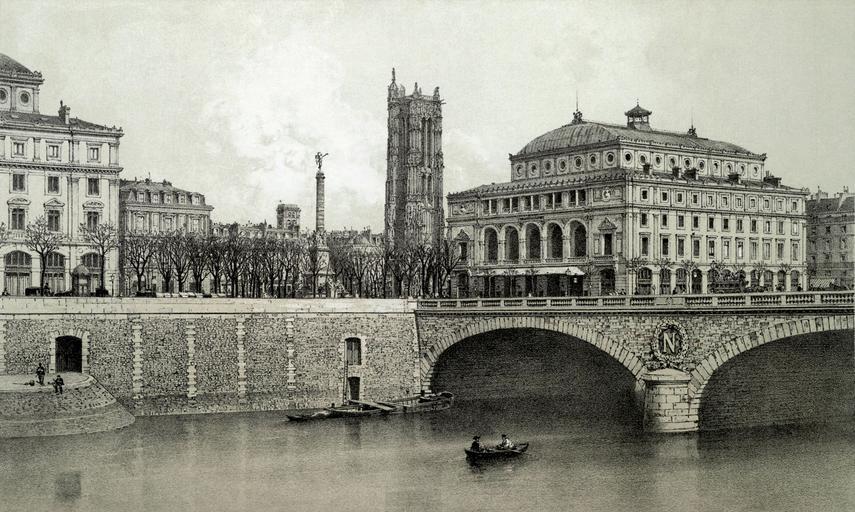 | Keywords: Place du Châtelet et Pont au Change, 1876.jpg Artwork The Place du Châtelet takes its name from the ancient fortress Le Grand Châtelet that was constructed to guard the Pont au Change It was destroyed by Napoléon I Napleon III however gave it its present form In the center of the Place stands a fountain A column built in 1808 is a monument to the victories of Napoléon I The Théâtre du Châtelet was opened in 1862 It was well served by tramway stations so it attracted large crowds at the end of the 19th century The Théâtre Lyrique on the Place du Châtelet was inaugurated in 1862 The theatre was burnt down in 1871 but rebuilt on the same architectural plan 1875-1882 lithograph 24 x 30 cm Institution Brown University Library object history exhibition history credit line Published in Theodor Josef Hubert Hoffbauer Paris à travers les âges Paris Firmin-Didot et cie 1885 accession number 1145901222800775 PD-old Lithographs of Paris Images of Paris from the Brown University Library Paris à travers les âges Place du Châtelet Paris Historical images of Pont au Change Fontaine du Palmier Historical images of the Théâtre du Châtelet Exterior of the Théâtre du Châtelet Théâtre de la Ville Historical images of Tour Saint-Jacques 1876 Quai de la Mégisserie Paris 1876 in Paris |