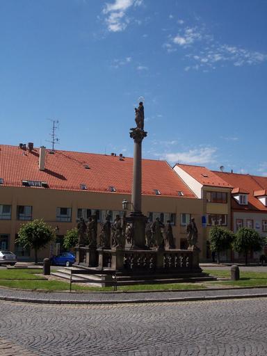 Keywords: plague column square sand city houses column the plague christianity history czech republic south bohemia písecko