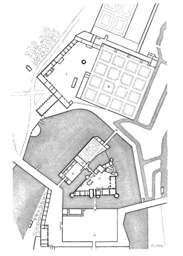 | Keywords: Plan.chateau.Chantilly.png C'était d'après ces données que le château de Chantilly avait été élevé un peu plus tard mais sur des proportions plus grandioses Chantilly situé à quatre kilomètres environ de Senlis est un des plus charmants lieux de cette partie de la France; de belles eaux des prairies étendues des bois magnifiques avaient fait choisir l'assiette du château qui était moins encore que Creil destiné à la défense Nous donnons 34 le plan des dispositions d'ensemble de cette résidence qui fut l'asile de tant de personnages illustres et de beaux esprits /Castle Plans of the château de Chantilly |