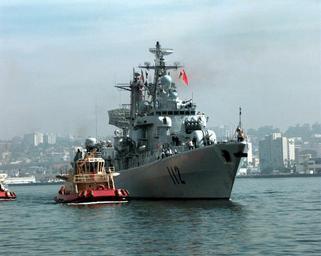 | Keywords: PLAN Harbin.jpg The People's Republic of China destroyer Harbin DD 112 pulls into San Diego Calif on March 21 1997 for a first-ever visit by People's Republic of China Navy ships to the mainland U S Harbin and two other People's Republic of China ships are visiting Southern California for the second part of a goodwill visit between the U S and Chinese navies The ships visited Hawaii on their way to San Diego The U S and the People's Republic of China navies are the two largest fleets in the Asia-Pacific region Interaction between the two navies increases mutual understanding and confidence During the visit Chinese sailors will have the opportunity to meet their U S Navy counterparts tour U S ships and experience American culture in Southern California The destroyers Harbin and Zhuhai and supply ship Nancang will moor next to the U S Navy's aircraft carrier USS Constellation CV 64 at Naval Air Station North Island DoD photo by Petty Officer 2nd Class Felix Garza U S Navy 1997-03-21 970321-N-4142G-002 Navy http //www defense gov/photos/newsphoto aspx newsphotoid 578 http //www defenselink mil/photos/Mar1997/970321-N-4142G-002 html DoD photo by Petty Officer 2nd Class Felix Garza U S Navy PD-USGov-Military-Navy PLANS Harbin DDG-112 Tugboats of the United States Naval ship arrivals to Naval Air Station North Island Photographs by Felix Garza Jr |