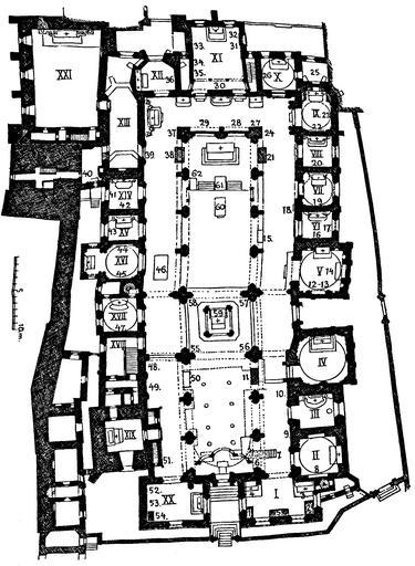 | Keywords: Plan katedry wawelskiej.jpg LangSwitch Plan katedry wawelskiej I Kaplica św Krzyża II Kaplica Potockich III Kaplica Szafrańców IV Kaplica Wazów V Kaplica Zygmuntowska VI Kaplica Konarskiego VII Kaplica św Jana Chrzciciela VIII Kaplica Jana Olbrachta IX Kaplica Jana Grota X Kaplica Tomickiego XI Kaplica Batorego XII Kaplica św Katarzyny XIII Zakrytia XIV Kaplica Zebrzydowskich XV Kaplica św Wawrzyńca XVI Kaplica Lipskich XVII Kaplica Maciejowskiego XVIII Kaplica św Mikołaja XIX Kaplica Czartoryskich XX Kaplica królowej Zofii XXI Skarbiec 1 Grobowiec królowej Elżbiety 2 Grobowiec Kazimierza Jagiellończyka 3 Ołtarz Matki Bożej 4 Ołtarz Św Trójcy 5 Grobowiec bp Sołtyka 6 Posąg Kmity 7 Zejście do krypt 8 Grobowiec bp Padniewskiego 9 Pomnik Kmity 10 Pomnik Boratyńskiego 11 Grobowiec Władysława Jagiełły 12 Pomnik Zygmunta I 13 Pomnik Zygmunta Augusta 14 Pomnik Anny Jagiellonki 15 Grób królowej Anny 16 Pomnik bp Szaniawskiego 17 Pomnik bp Konarskiego 18 Pomnik kard Dunajewskiego 19 Pomnik bp Zadzika 20 Grobowiec Jana Olbrachta 21 Grobowiec Kazimierza Wielkiego 22 Pomnik Dębińskiego 23 Pomnik bp Grota 24 Płyta Zbigniewa Oleśnickiego 25 Zakrystia kapliczna 26 Pomnik bp Tomickiego 27 Pomnik bp Oborskiego 28 Pomnika Jana Sobieskiego 29 Pomnik Michała Wiśniowieckiego 30 Stalle królewskie 31 Pomnik kanonika Zbąskiego 32 Pomnik kanonika Wapowskiego 33 Pomnika Stefana Batorego 34 Pomnik G Tarnowskiego 35 Pomnik kanonika Serebrzyńskiego 36 Pomnik bp Gamrata 37 Płyta kanonika Borka 38 Grobowiec Władysława Łokietka 39 Wejście do zakrystii 40 Wejście do Wieży Zygmuntowskiej 41 Pomnik Zebrzydowskiego 42 Pomnik bp Zebrzydowskiego 43 Pomnik kanonika Rożnowskiego 44 Pomnik bp Lipskiego 45 Pomnik kard Lipskiego 46 Grób Adama Mickiewicza 47 Pomnik bp Maciejowskiego 48 Pomnik bp Potkańskiego 49 Pomnik bp Trzebickiego 51 Pomnik kanonika Sabińskiego 53 Pomnik bp Tylickiego 54 Grób królowej Zofii 55 Pomnik bp Szyszkowskiego 56 Pomnik bp Gembickiego 57 Pomnik bp Łubieńskiego 58 Pomnik bp Małachowskiego 59 Grobowiec św Stanisława 60 Grób Zbigniewa Oleśnickiego 61 Grobowiec kard Fryderyka Jagiellończyka 62 Grób królowej Jadwigi Floor plan of the Wawel Cathedral 1902 cite book Eljasz-Radzikowski Walery Walery Eljasz-Radzikowski Kraków dawny i dzisiejszy http //www polona pl/item/1270568/183/ 1902 338 339 Polish Creator Walery Eljasz-Radzikowski PD-Art PD-old-auto 1905 Poland Uploaded with UploadWizard Maps of the Wawel Cathedral Walery Eljasz-Radzikowski |