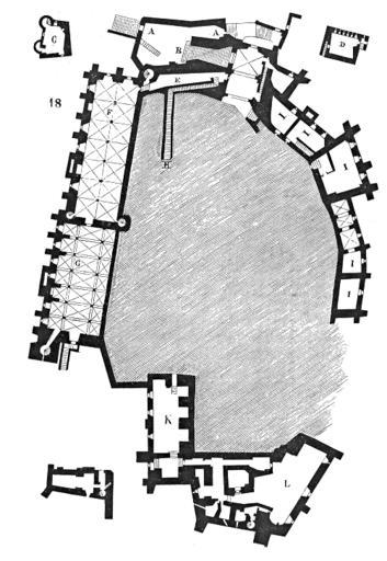 | Keywords: Plan.mont.Saint.Michel.2.png Plan du Mont Saint Michel Détail des bâtiments qui formant rez-de-chaussée entourent le sommet du rocher Issu du Dictionnaire raisonné de l'architecture française du XIe au XVIe siècle par Eugène Viollet-Le-Duc 1856 /Abbey Medieval architecture Plans of Mont Saint-Michel Abbey |