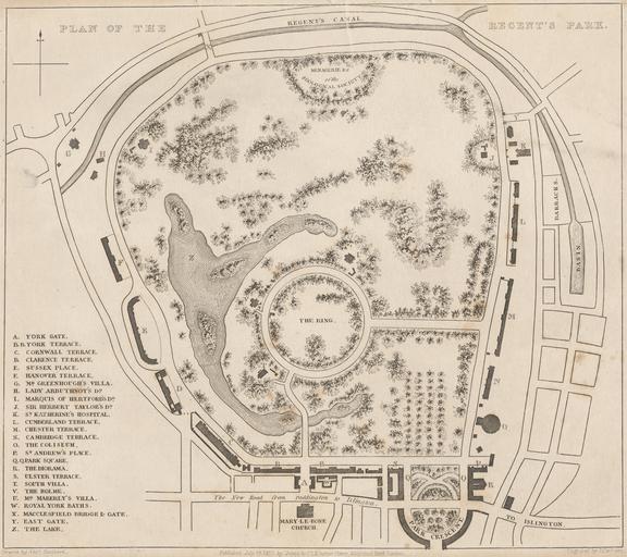 | Keywords: Plan of the Regent's Park by John Cleghorn.jpg en Plan of the Regent's Park by John Cleghorn active 1840-1881 after Thomas Hosmer Shepherd 1792-1864 printed by Jones Co active 1822-1850 Dated 1827 Etching on beige laid paper 8 inches x 9 1/16 inches 20 3 cm x 23 cm Courtesy of the Paul Mellon Collection Yale Center for British Art Yale University New Haven Connecticut 2011-05-13 09 03 13 Yale Center for British Art http //collections britishart yale edu/vufind/Record/3622516 John Cleghorn after Thomas Hosmer Shepherd PD-Art Uploaded with UploadWizard Old maps of London Georgian era 1827 in England Maps of Regent's Park |