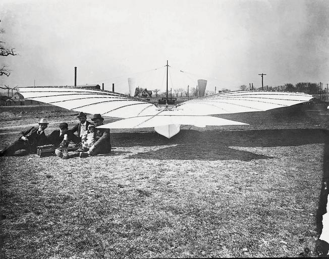 Keywords: Plane rear w crew.jpg Gustave Whitehead and his 1901 monoplane taken near Whitehead's Pine Street shop His infant daughter Rose sits on her father's lap and the engine that powers the front landing-gear wheels is on the ground in front of the others Source 1901 Valerian Gribayedoff 1858 “1908 PD-old <br/> Author Same picture in less quality in Österreichs Illustrierte Zeitung http //anno onb ac at/cgi-content/anno aid oiz datum 19011006 seite 5 zoom 33 11 Jg Nr 1 from 1901-10-06 p 5 with autor Phot Gribayedoff Paris and underline Das Problem des lenkbaren Luftschiffes Whiteheads neue Flugmaschine 20th-century black and white photographs of France 1901 in aviation 1900s aircraft Gustave Whitehead Valerian Gribayedoff