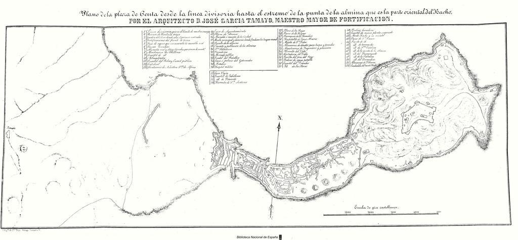 Keywords: Plano de Ceuta en 1855.jpg es Plano de la plaza de Ceuta desde la línea divisoria hasta el extremo de la punta de la almina que es la parte oriental del Hacho por el arquitecto D José García Tamayo maestro mayor de fortificación before 1855 cite web http //www europeana eu/resolve/record/9200127/6240803C4DE105E68F0A237952C2442600FB1DFE Apuntes médico-topográficos de la ciudad de Ceuta ; Texto impreso ; memoria presentada a la Real Academia de Medicina de Madrid ; por Santiago García Vázquez ; García Vázquez Santiago ; 2012-11-11 Europeana José García Tamayo Custom license marker 2012 11 10 PD-old Uploaded with UploadWizard Old maps of Ceuta Files uploaded by Ecemaml Spain in the 1850s 1855 |