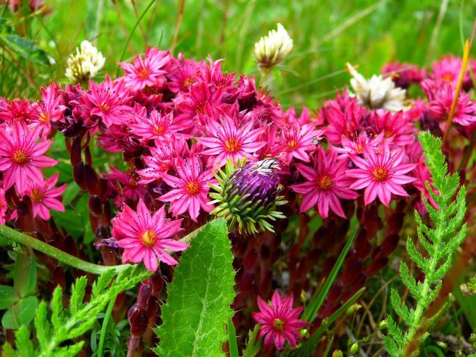 Keywords: plant flowers blossom bloom pink alpine roof houseleek sempervivum tectorum alpinum