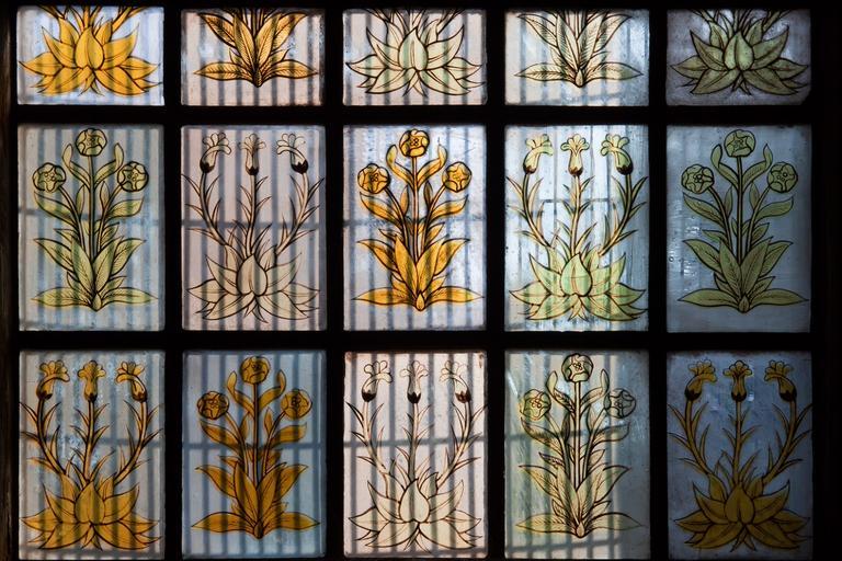 Keywords: plant flowers orange yellow stained glass lead leaded glass gothic old antique church bristol england