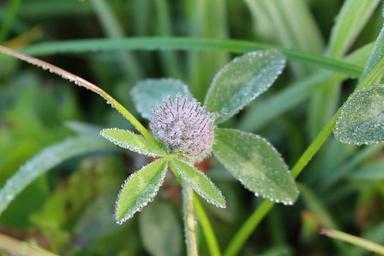 Keywords: plant klee morning close leaves blossom bloom green nature purple meadow wildflowers morgentau dew wet blades of grass summer