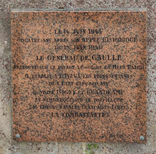 | Keywords: Plaque de Gaulle Courseulles Normandie.jpg en Plaque commemorating the landing of gén De Gaulle to France on june 14th 1944 in Courseulles/Graye Calvados Normandy France fr Plaque commémorant le débarquement du Général De Gaulle en France le 14 juin 1944 Courseulles-sur-Mer / Graye-sur-Mer Calvados 2015-05-02 10 27 21 own Jebulon other versions 49 337376 -0 467652 cc-zero Uploaded with UploadWizard Graye-sur-Mer Plaques referencing 1944 in France Plaques referencing 1940 Monuments and memorials to Charles de Gaulle Plaques referencing 1996 Courseulles-sur-Mer War memorials in Calvados Forces Navales Françaises Libres June 1944 in France Quality images by Jebulon QualityImage |