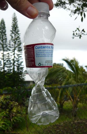 | Keywords: Plastic bottle at 1000 feet, sealed at 14000 feet.png  en Plastic bottle sealed at 14 000 feet on Mauna Kea observatory on the island of Hawaii taken down to 1000 feet where the air pressure is crushing the botte own Quantockgoblin 2009-07-02 Air pressure Plastic bottles |