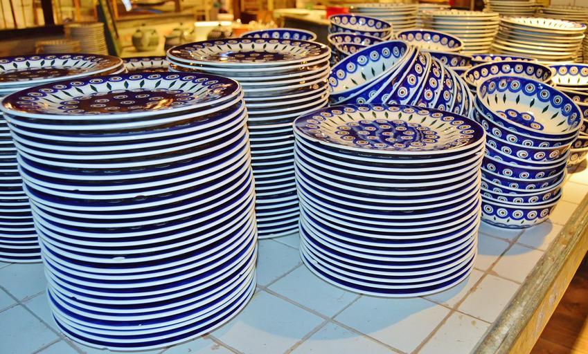 Keywords: plate bolesławiec tableware shells stacked gastronomy equipment dinnerware