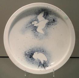 Keywords: Plate with Blown-ink Crane Design, c. 1640-1650, Arita, hard-paste porcelain with underglaze cobalt - Gardiner Museum, Toronto - DSC00378.JPG Exhibit in the Gardiner Museum Toronto Ontario Canada This artwork is in the public domain because the artist died more than 70 years ago Photography was permitted in the museum without restriction Daderot 2012-10-16 13 58 04 Daderot cc0 cc0 Japanese pottery in the Gardiner Museum Hard-paste porcelain |