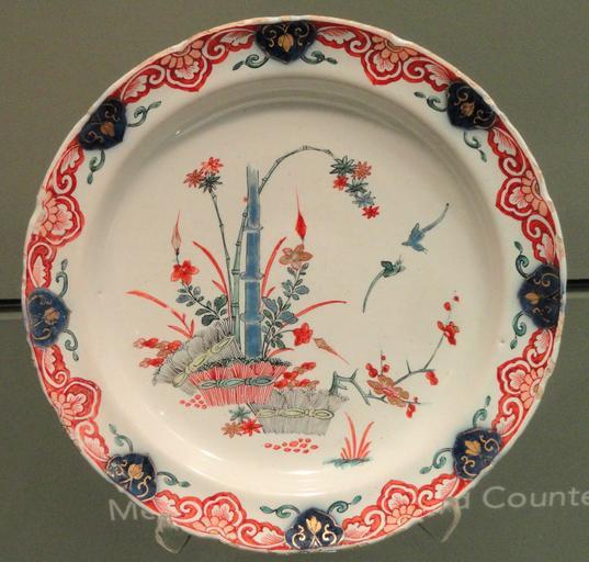 MAKE A MEME View Large Image Plate with Floral Design, c. 1715, Delft, decorated by Amarensie Van Kessel, tin-glazed earthenware, enamels, gold - Gardiner Museum, Toronto - DSC00396.JPG Exhibit in the Gardiner Museum Toronto Ontario Canada This artwork is in the public ...