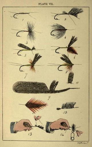 Keywords: PlateVIIFlyTyingFromRodFishingWithFlys.JPG Plate VII From Rod Fishing Henry Wade London 1860 Extracted From A Public Domain PDF version of Rod Fishing on the Internet Archive 2008-01 Mike Cline PD-old Fly tying