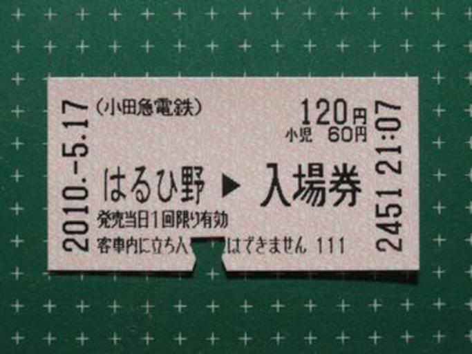 Keywords: Platform ticket Haruhino Sta.jpg en Platform ticket Haruhino Sta Haruhino Station Rail tickets of Odakyu Electric Railway Edmondson railway tickets Railway platform tickets