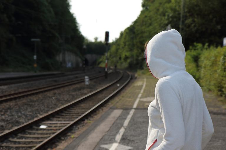Keywords: platform travel track seemed railroad track departure tracks young people girl youth age of majority dreams wanderlust eighteen