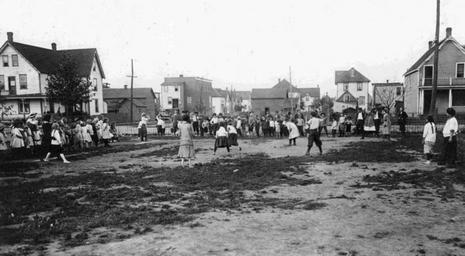 | Keywords: baseball baseball players baseballplayers sports recreation leisure children crowd baseball diamond baseballdiamond residential houses ontario canada history schools education women fort william fortwilliam thunder bay thunderbay blackandwhite monochrome outdoor black and white Date: Unknown Description: In this photograph, a group of female school children play a game of baseball at Odgen School. The photo is entitled, "Developing health, skill, and good fellowship." Accession No.: 973.105.111 Date: Unknown Description: In this photograph, a group of female school children play a game of baseball at Odgen School. The photo is entitled, "Developing health, skill, and good fellowship." Accession No.: 973.105.111 |