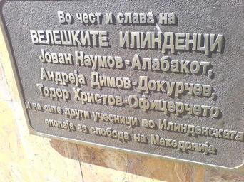 Keywords: Plocha.JPG en Plaque on Statue of Ilindentzi bg плоча на статуята във Велес на Илинденците archive of s Подпо учикъ s Подпо учикъ 2008-03-02 Veleški Ilindenci IMARO