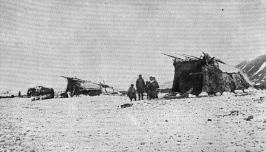 Keywords: Plover Bay houses 1884 Healy p27.JPG en Yupik summer houses Topeks at Plover Provideniya Bay Chukotka Russia Report of the cruise of the revenue marine steamer Corwin in the Arctic Ocean in the year 1884 Govt print off Washington http //books google com/books id 1l4SAAAAYAAJ Healy Michael A Photographer not named 1884; published 1889 Inuit houses Provideniya Bay Images from voyages of the Corwin PD-USGov |