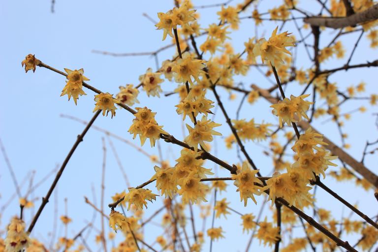Keywords: plum blossom spring germination chimonanthus praecox yellow sky at dusk flowers