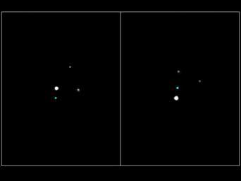 | Keywords: Pluto system 2005 discovery images (dumb version).jpg Discovery images of Plutonian satellites P1 and P2 The enhanced-color images of Pluto the brightest object and Charon to the right of Pluto were constructed by combining short exposure images taken in filters near 475 nanometers blue and 555 nanometers green-yellow The images of the new satellites were made from longer exposures taken in a single filter centered near 606 nanometers yellow so no color information is available for them Photo prise par Hubble de la découverte de satellites plutonien P1 et P2 Pluton objet le plus brillant en jaune Charon à droite de Pluton en bleu et les nouveaux satellites en gris http //imgsrc hubblesite org/hu/db/2005/19/images/a/formats/web_print jpg 2010-04-19 NASA ESA H Weaver JHU/APL A Stern SwRI and the Hubble Space Telescope Pluto Companion Search Team user Medium69/old PD-USGov-NASA cc-by-sa-2 0-fr <gallery> Image Pluto system 2005 discovery images jpg en Image Pluto system 2005 discovery images french jpg fr </gallery> Moons of Pluto Photos of Pluto system by Hubble Schemes in virgin Old version of an images by Medium69 |
