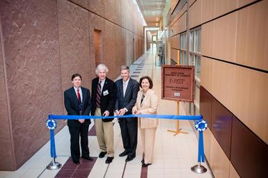 | Keywords: PML Ribbon Cutting (6964404932).jpg The new Precision Measurement Laboratory on the Boulder campus was officially dedicated on April 13 The large building boasts 280 000 square feet 26 013 square meters of lab space clean-room space offices for scientists and support staff conference facilities and mechanical support space Cutting the ribbon were Acting NIST Boulder Labs Director Kent Rochford Mayor of Boulder Matt Appelbaum NIST Director Pat Gallagher and NIST Chief Facilities Management Officer Stella Fiotes The event took place the same day as the opening of the new 56 000-square-foot 5 203-square-meter expansion of JILA on the campus of the University of Colorado Credit Christina Kiffney/NIST Disclaimer Any mention of commercial products within NIST web pages is for information only; it does not imply recommendation or endorsement by NIST Use of NIST Information These World Wide Web pages are provided as a public service by the National Institute of Standards and Technology NIST With the exception of material marked as copyrighted information presented on these pages is considered public information and may be distributed or copied Use of appropriate byline/photo/image credits is requested https //www flickr com/photos/usnistgov/6964404932/ PML Ribbon Cutting 2012-04-24 15 21 https //www flickr com/people/63059536 N06 National Institute of Standards and Technology PD-USGov National Institute of Standards and Technology https //flickr com/photos/63059536 N06/6964404932 2016-09-07 01 55 34 United States Government Work Uncategorized 2016 October 5 |