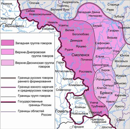 Keywords: Западные-южнорусские-говоры.png ru Ка та западных южно усских гово ов Западная г уппа Ве хне-Днеп овская г уппа и Ве хне-Деснинская г уппа по диалектологической ка те 1965 года а основе данных Заха ова К Ф О лова В Г Диалектное членение усского языка аука 1970 2-е изд Едито иал УРСС 2004 http //www booksite ru/fulltext/rus/sian/5 htm Русские оног афия Института этнологии и ант опологии http //www gramota ru/book/rulang/page2_3 html Феде альная целевая п ог амма Русский язык Региональный цент ИТ Пет ГУ 2011-12-12 own Trevbus cc-zero Southern Russian dialects