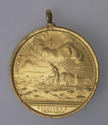 | Keywords: Poborniku Pavoslavia 20.jpeg ru Эта медаль «Побо нику п авославия» в 20 че вонцев выпущена в пе иод Пе вой А хипелагской экспедиции 1769-1775 годов и п оекта ни документов на изготовление этих медалей в а хивах не сох анилось В публикациях Ю Б Иве сена они названы « едалями на ныняшний военный случай» указано что чеканили их из золота и азного достоинства в 20 15 12 5 и 3 че вонца Эта медаль на 20 че вонцев найдена усскими водолазами на дне Чесменской бухты в 1889 году П едположительно п инадлежала Федо у Г иго ьевичу О лову б ату командующего экспедицией Алексея Г иго ьевича О лова уте яная в момент Чесменской битвы в 1770 году http //s30983408019 mirtesen ru/blog/43092369723 Author 1770 PD-RU-exempt orders decorations and medals Medals of the Russian Empire Russo-Turkish Wars PD-old-100 |