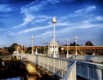 Keywords: pocomoke city maryland bridge drawbridge sky clouds urban