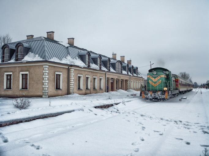 Keywords: podlaski poland train station depot railroad railway building architecture sky clouds winter snow passengers nature outside transportation