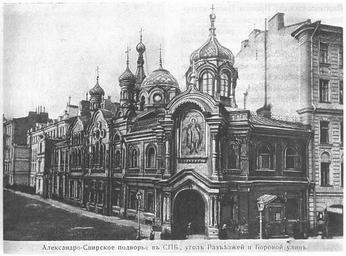 Keywords: Podvorie Aleksandro-Svirskogo monastyra Peterburg old.jpg Saint Petersburg Russia Санкт-Пете бу г Бо овая улица Це ковь Благ Кн Александ а евского Александ о-Сви ского монасты я Олонецкой епа хии Saint-Pétersbourg http //www svirskoe ru/ru/peterburg/old/peterburg_old php author 1900 PD-old Russian Orthodox churches in Tsentralny District of Saint Petersburg Borovaya Street Saint Petersburg