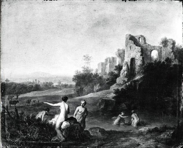 Keywords: Poelenburgh Landscape.jpg Landscape with bathing women Krajobraz z kąpiącymi się kobietami Creator Cornelis van Poelenburch s 1630 oil panel cm 22 27 Catalogue of paintings removed from Poland by the German occupation authorities during the years 1939-1945 1 Foreign paintings / comp Władysław Tomkiewicz ; Ministry of Culture and Art Warsaw 1950 Editor Ministry of Culture and Art See also http //kolekcje mkidn gov pl/ Department of National Heritage Wartime losses an official webpage of Polish Ministry of Culture Art and National Heritage 8928 object history < 1939-1940 Museum of the Jagiellonian University in Kraków > 1939-1940 missing PD-Art PD-old-100 Cornelis van Poelenburch 17th-century foreign paintings lost in Poland during World War II Jagiellonian University Museum Bathing females in black and white art |