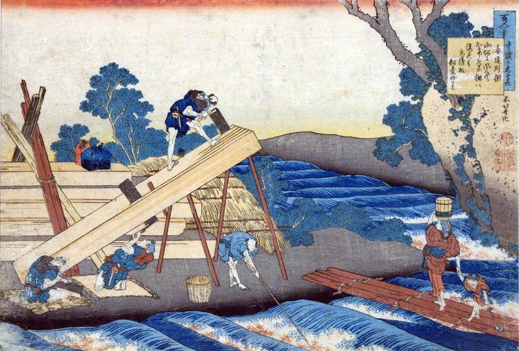 | Keywords: Poem by Harumichi no Tsuraki (5765887702).jpg en <b>Accession Number </b> 1957 197 <b>Display Artist </b> Katsushika Hokusai <b>Display Title </b> Poem by Harumichi no Tsuraki <b>Translation s </b> Harumichi no Tsuraki <b>Series Title </b> One-hundred Poems as Explained by the Nurse <b>Suite Name </b> Hyakunin isshu uba ga etoki <b>Creation Date </b> 1835 <b>Medium </b> Woodblock <b>Height </b> 9 7/8 in <b>Width </b> 14 3/8 in <b>Display Dimensions </b> 9 7/8 in x 14 3/8 in 25 08 cm x 36 51 cm <b>Publisher </b> Iseya Sanjiro <b>Credit Line </b> Bequest of Mrs Cora Timken Burnett <b>Label Copy </b> The artist of this print revisits the theme of carpenters making boards from a huge block of lumber recalling the dramatic composition of his famous Thirty-six Views of Mount Fuji and scenes in his pattern books The poem he illustrates is by a tenth-century provincial governor who wrote In a mountain stream Built by the busy windIs a bamboo barrier Yet it is only of maple leavesPowerless to flow away Hokusai takes evident joy in depicting the life and work of peasants Besides the men cutting the boards one sharpens a blade; a fisherman drags in a net and a woman crosses a plank bridge with a child who drags a pet turtle on a leash <b>Label Copy Spanish </b> El artista de esta impresin vuelve a visitar el tema de los carpinteros que hacen tablas de un gran bloque de madera recordando la composicin dramtica de sus famosas Treinta y seis vistas del monte Fuji y escenas en sus libros de diseos El poema que ilustra es por un gobernador provincial del siglo X que escribi En un arroyo de montaa Construida por el viento atareadoEst la valla de bamb Pero es de hojas de arceQue no pueden fluir Es evidente que a Hokusai le alegra representar la vida y el trabajo de los campesinos Adems de los hombres cortando las tablas uno afila un cuchillo; un pescador jala una red y una mujer cruza un puente con un nio que arrastra a una tortuga con una correa <b>Collection </b> <a href http //www sdmart org/art/our-collection/asian-art rel nofollow >The San Diego Museum of Art</a> 2007-05-10 10 16 51 https //www flickr com/photos/thesandiegomuseumofartcollection/5765887702/ Flickr en thesandiegomuseumofartcollection PD-old-100 Files from the San Diego Museum of Art to be checked |