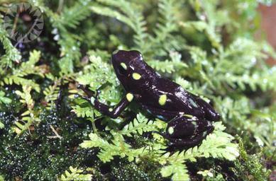 MAKE A MEME View Large Image ...Green spotted poison dart frog found in the jungles of Darien, Panama. Dendrobates Auratus Male carries tadpoles, common in canal zone, Taboga Island and Darien. ..Credit: Carl C. Hansen (Smithsonian Institution) SI Neg. 89-4838. Date: ...