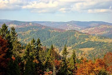 Keywords: poland pieniny autumn the sun colors foliage holiday landscape mountains nature green trail forest tree view tourism sunny travel the horizon peace of mind the silence blue sky sky colorful
