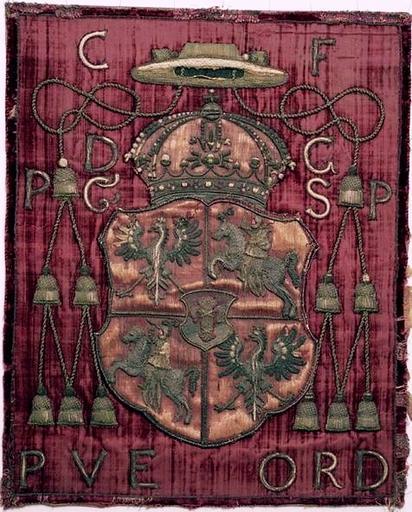 | Keywords: Poland Seat upholstery.jpg Poland 1651-1655 silk gold thread velvet cm 59 47 5 Institution National Museum Warsaw Not on view accession number SZT 1920 object history credit line Carolus Ferdinandus Dei Gratia POLoniae ET Sveciae Princeps / Plocensis Vratislaviensis Episcopus / Oppoliensis Ractiboriensis Dux Adorned with a shield with arms of the Polish-Lithuanian Commonwealth the House of Vasa in the center and Charles Ferdinand's initials Robert Kirkland Monika Jurewicz-Waśniewska Joanna Śmigielska 2002 The Eagle and the Three Crowns Zamek Królewski ISBN 83-70221-25-4 cat no II 75 http //old mnw art pl/index php/zbiory/konserwacja/aktualnosci/ old mnw art pl See below PD-old-100 DEFAULTSORT 1651-1655; Seat upholstery Embroidery of Poland Textiles in the National Museum in Warsaw Polish art in the National Museum in Warsaw Textiles from the Polish Vasa Collection Charles Ferdinand Vasa Upholstered chairs Velvet Upholstery Coats of arms of the House of Vasa 17th-century embroidery Close-ups of woven textiles Ecclesiastical embroidery |