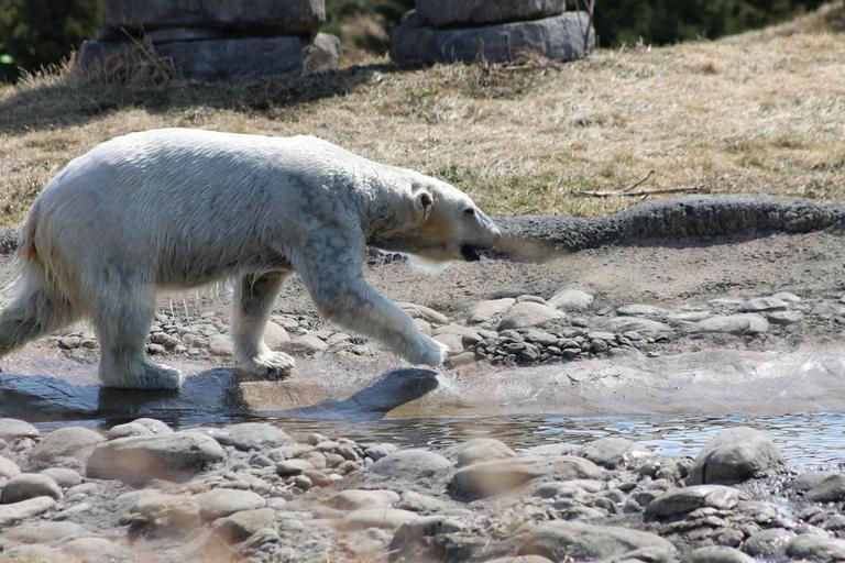 Keywords: polar bear bear water play animal nature arctic white endangered zoo habitat jump big