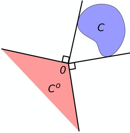 | Keywords: Polar cone illustration1.svg A set C and its polar cone Co The dual cone and the polar cone are symmetric to each other with respect to the origin own Oleg Alexandrov Made with Inkscape Convex geometry Optimization Files by User Oleg Alexandrov from en wikipedia |