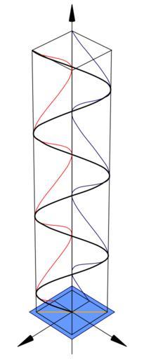 | Keywords: Polarisation (Linear).svg Diagram of linear polarisation The direction of the black line relative to the central axis represents the direction of the electric field of the linearly polarized light at each point in space The blue and red lines are projections of the black onto two planes which are at right angles ---- There is an version which is identical to this original with the exception of phase indictors to make the phase relationship of its components clearer Refer to Other Versions section below Own drawing down in Mathematica edited in the Open Source program Inscape Created with Inkscape 12/02/07 inductiveload Polarisation Linear With Phase Indicators svg Circular polarisation Elliptical polarisation Mathematica Code This figure requires the use of Arrow3D which is not included in the StandardPackages as of Feb 2007 This can be obtained from Wolfram Research at http //library wolfram com/infocenter/TechNotes/4117/ this location The required packages are << Graphics` << Arrow3D`Arrow3D` The code is <pre><nowiki> wavefunction ParametricPlot3D Sin4t -Sin4t t t 0 5 BoxRatios\Rule 1 1 4 ImageSize\Rule400 Boxed\RuleFalse Axes\RuleFalse PlotPoints\Rule60 ViewPoint-> 2 2 2 PlotRange\RuleAll repsi ParametricPlot3D Sin4t -1 t RGBColor1 0 0 t 0 5 BoxRatios\Rule 4 1 1 ImageSize\Rule500 Boxed\RuleFalse Axes\RuleFalse PlotPoints\Rule60 PlotRange\RuleAll impsi ParametricPlot3D -1 -Sin4t t RGBColor0 0 102/255 t 0 5 BoxRatios\Rule 4 1 1 ImageSize\Rule500 Boxed\RuleFalse Axes\RuleFalse PlotPoints\Rule60 PlotRange\RuleAll end ParametricPlot3D Sint -Sint 0 t 0 2Ï BoxRatios\Rule 4 1 1 ImageSize\Rule500 Boxed\RuleFalse Axes\RuleFalse PlotPoints\Rule10 PlotRange\RuleAll xaxis Graphics3DArrow3D 0 0 -1 0 0 6 HeadSize \Rule UniformSize 5 HeadColor\RuleBlack uaxis Graphics3DArrow3D 0 -1 0 0 3 0 HeadSize \Rule UniformSize 5 HeadColor\RuleBlack vaxis Graphics3DArrow3D -1 0 0 3 0 0 HeadSize \Rule UniformSize 5 HeadColor\RuleBlack plane Graphics3DPolygon 1 2 1 2 0 1 2 -1 2 0 -1 2 -1 2 0 -1 2 1 2 0 \ crate WireFrameGraphics3DCuboid 1 1 0 -1 -1 5 Showwavefunction xaxis uaxis vaxis plane repsi impsi end crate </nowiki></pre> Polarization SVG physics |
