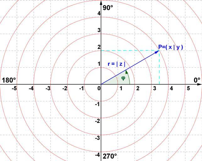 Keywords: Polarkoordinaten und Polarform.png de Polares und kartesisches Koordinatensystem own Sterngugger89 Polar coordinate system Complex unit circle