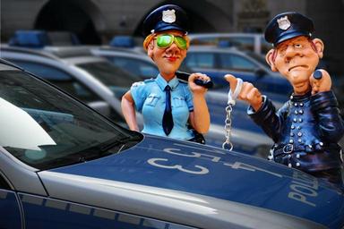 Keywords: police autos cop policewoman figures funny courtyard service building police cars vehicles fun handcuffs photo montage