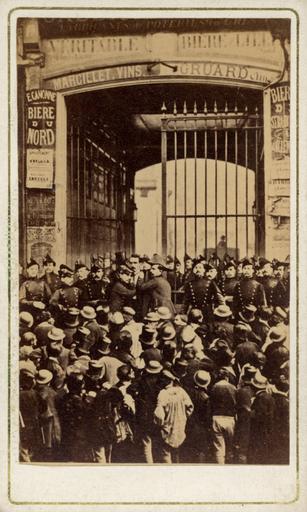Keywords: Police and crowd outside gate.jpg Street scene of a group assembled in front of the gate of a wine and beer depot guarded by policemen 1858-1875 photograph Institution Brown University Library object history exhibition history credit line accession number 1127245403370231 PD-old Images of Paris from the Brown University Library 19th-century photographs of Paris Crowds in France |