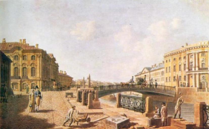 Π ΠΎΠΉΠΊΠΈ Π΄ΠΎ 1811 Π³ΠΎΠ΄Π° copper engraving Watercolour paper cm 37 9 56 6 Π Π°ΡΠΊΡ Π°ΡΠ΅Π½Π½Π°Ρ Π³Ρ Π°Π²ΡΡ Π° http //www encspb ru/image/2805310592/1 1809-1811 after 1808 Creator Benjamin Patersen PD-old-100 Green Bridge Saint Petersburg William Hastie Moika River from Pevchesky Bridge to Red Bridge Paintings of Saint Petersburg Benjamin Patersen Chicherin House |