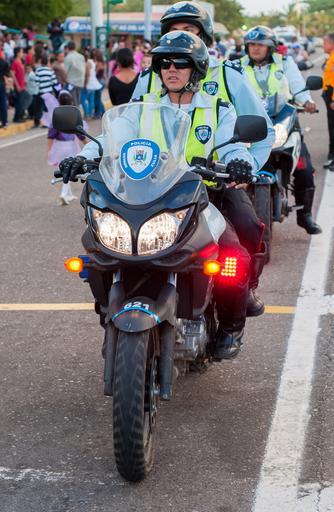 Keywords: policeman bike procession authority protection motorcycle crime regimentals motorbike cortege uniform road Maracaibo