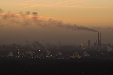 Keywords: pollution industrial plant steel mill blast furnace hut ruhr area north rhine westphalia factory metal environmental protection tstg tks duisburg thyssen tkse hamborn heavy industry exhaust gases germany chimney smoke industry krupp night