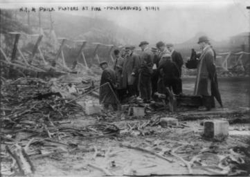 Keywords: Polo Grounds Fire.jpg en New York Giants and Philadelphia Phillies players at site of fire - Polo Grounds NYC April 14 1911 Library of Congress Prints and Photographs Division LC-USZ62-80748 b w film copy neg http //www loc gov/index html Library Of Congress 1911-04-14 PD-US LOC-image cph 3b47623 PD-Bain Polo Grounds New York Giants baseball New York Giants baseball players |