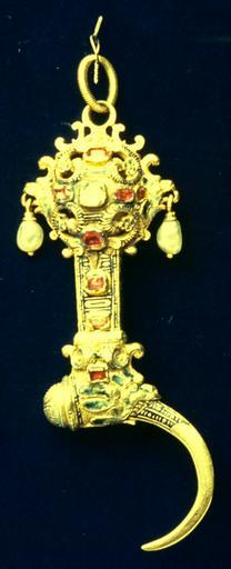 | Keywords: Pomander - Walters 44482.jpg A pomander was a pierced container usually of highly decorated metal containing an aromatic substance such as balsam resin or ambergris a sweet-smelling oily wax regurgitated by the sperm whale worn to protect against bad odors Women often suspended them from their girdle belt Pomander can also refer to the sweet-smelling substances themselves which today we may put in a drawer with linens or underwear Here a small pomander is combined with a toothpick a necessity in the time before toothbrushes Queen Elizabeth I of England 1533-1603 carried one During the 1600s the popularity of wooden toothpicks made carrying one like this a bit old-fashioned between 1550 1600 Renaissance gold enamel diamond rubies pearls cm 8 1 accession number 44 482 29870 Henry Walters Baltimore date and mode of acquisition unknown Walters Art Museum Henry Walters Acquired by Henry Walters World of Wonder The Walters Art Gallery Baltimore 1971-1972 Jewelry - Ancient to Modern The Walters Art Gallery Baltimore 1979-1980 Objects of Adornment Five Thousand Years of Jewelry from the Walters Art Gallery Baltimore Cooper-Hewitt National Design Museum New York; Chrysler Museum of Art Norfolk; Carnegie Museum of Art Pittsburgh; San Antonio Museum of Art San Antonio; Philbrook Museum of Art Tulsa; Honolulu Academy of Arts Honolulu; New Orleans Museum of Art New Orleans; Milwaukee Art Museum Milwaukee; Minneapolis Institute of Arts Minneapolis; Toledo Museum of Art Toledo; The John and Mable Ringling Museum of Art Sarasota 1984-1987 Jewelry from the Walters Art Museum and the Zucker Family Collection The Walters Art Gallery Baltimore 1987 place of origin Germany Walters Art Museum license Renaissance applied arts in the Walters Art Museum German art in the Walters Art Museum Media contributed by the Walters Art Museum needs category review Pomanders |