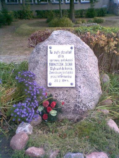 Keywords: Pomnik Jujki.jpg pl Kamień upamiętniający Franciszka Jujkę przy Zespole Szkół w Starym Targu own Pawmak 2009-10-18 Stary Targ