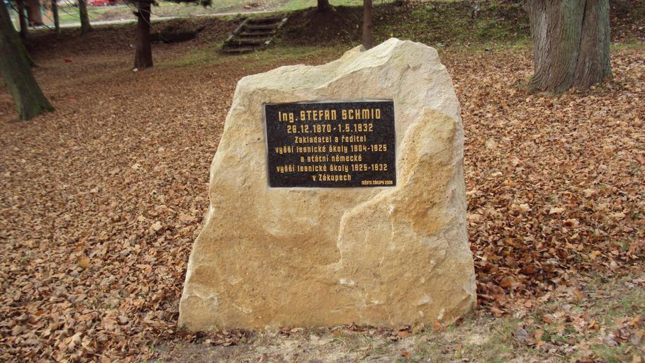| Keywords: Pomník ředitele Schmida.jpg cs Pomníček ředitele lesnické školy ing Schmida v Nových Zákupech own Zákupák 2009-11-20 0 cellpadding 15 cellspacing 0 style text-align left; background black; color white - text-align center; Ing STEFAN SCHMID <br /> 26 12 1870 - 1 5 1932 <br /> Zakladatel a ředitel <br /> vyšší lesnické školy 1904 - 1925 <br /> a státní německé <br /> vyšší lesnické školy 1925 - 1932 <br /> v Zákupech <br /> <small>MĚSTO ZÁKUPY 2009 </small> Arboretum Nové Zákupy Monuments and memorials in Česká Lípa District Plaques in Česká Lípa District Stefan Schmid Schools in Zákupy |